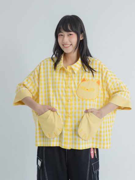 格紋貓掌襯衫