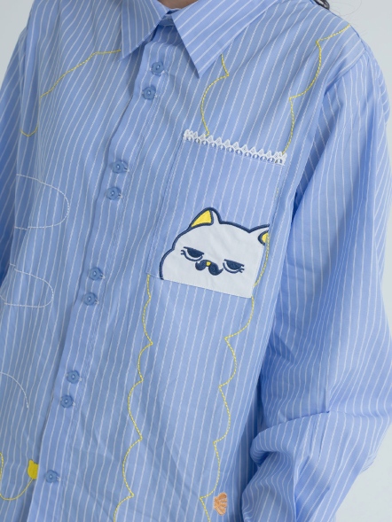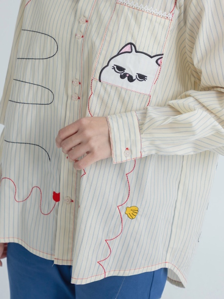 圓領貓咪條紋上衣