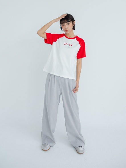 鬍子貓撞色滾邊上衣