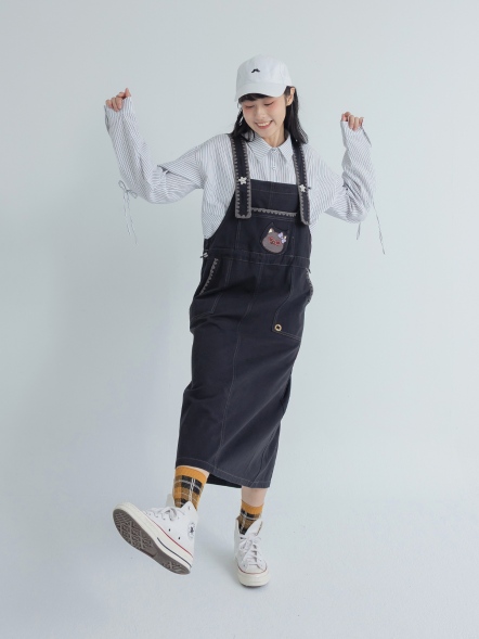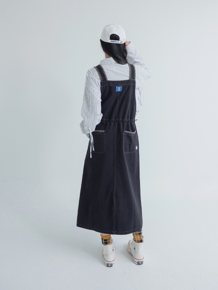 重工毛線口袋吊帶裙