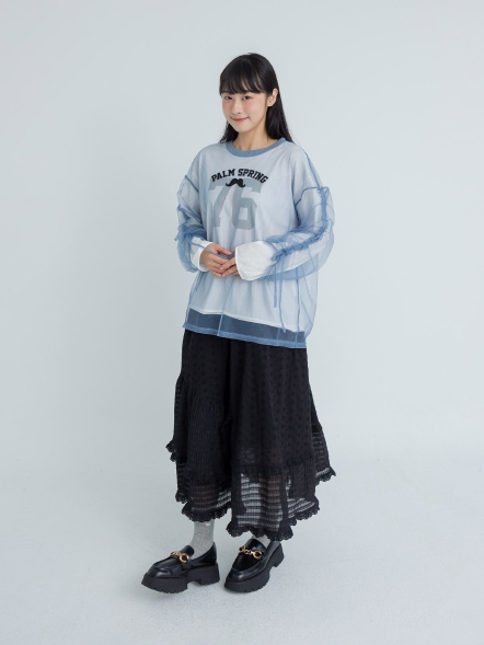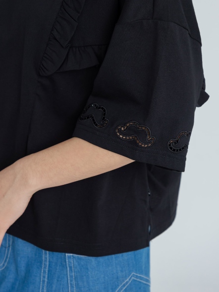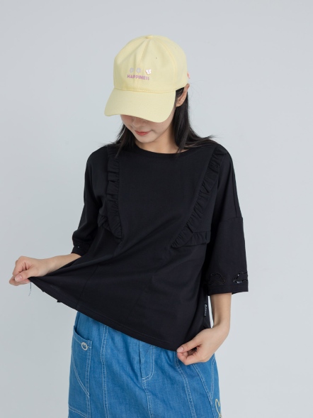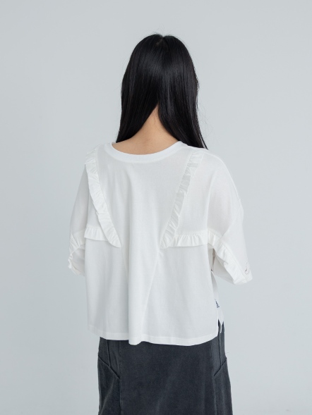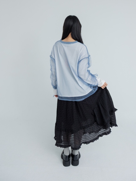 設計感斜裁荷葉鬍子鏤空雙面穿上衣