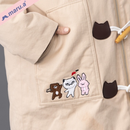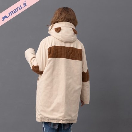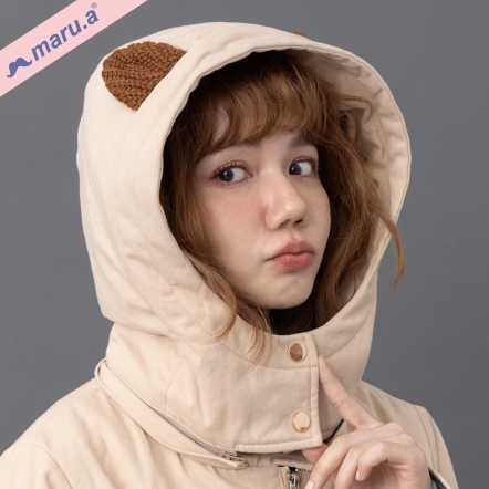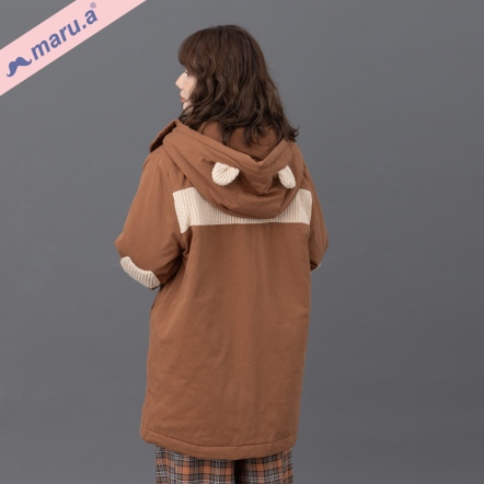 【maru.a】美拉德色系✨棕色小熊牛角釦手繪刺繡鋪棉連帽大衣(2色)-卡其 23922212