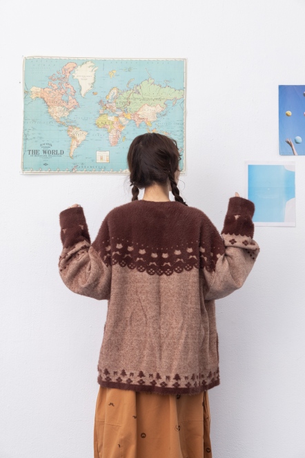 【maru.a】北歐童話🧸羊毛彩紗緹花拼接排釦北極絨上衣(3色)-咖啡 24934111