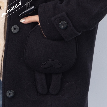 【maru.a】👑高質感立體蓬蓬miru口袋牛角排釦連帽羊毛大衣(2色)-黑色 24912312