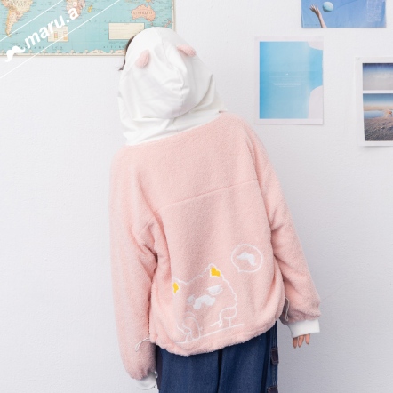 【maru.a】草莓可可🍓超萌miru刺繡連帽貓耳QQ毛外套(2色)-淺粉 24922211