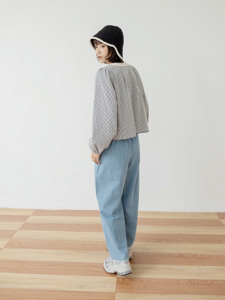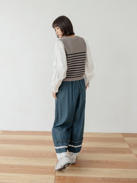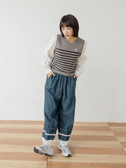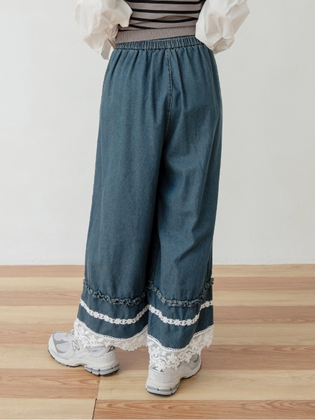 層次荷葉邊蕾絲丹寧寬褲