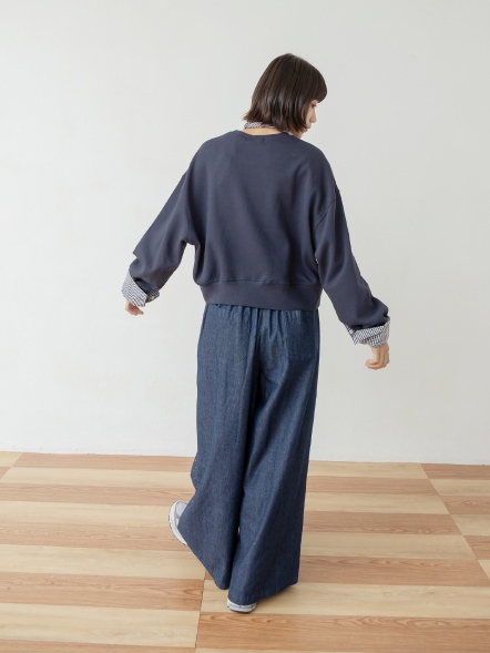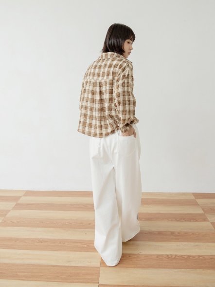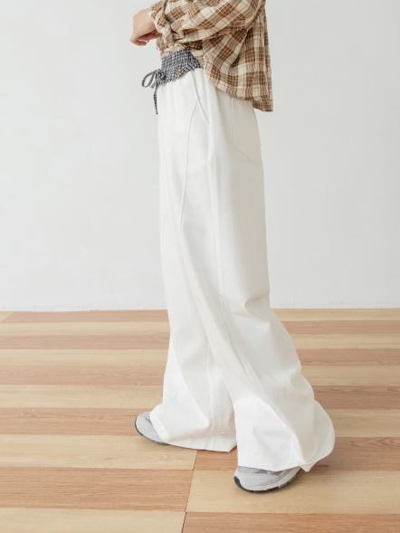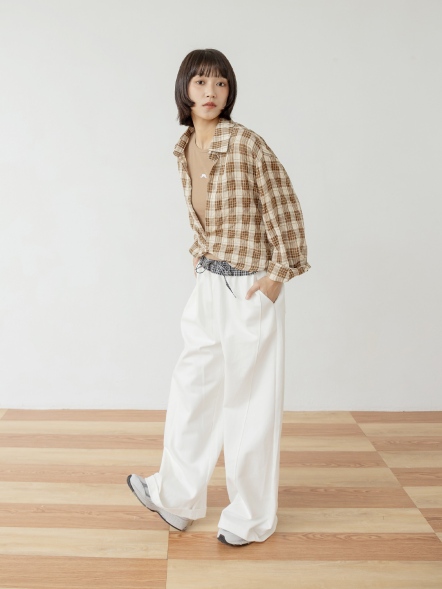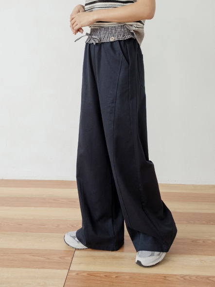 格紋拼接闊腿褲