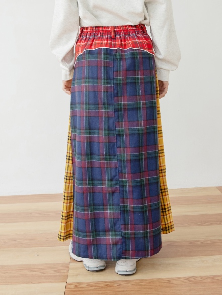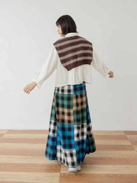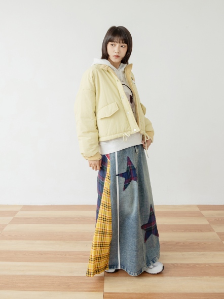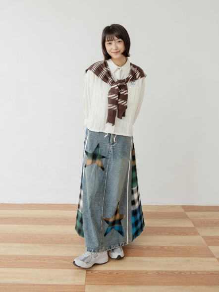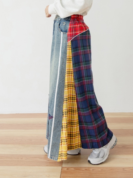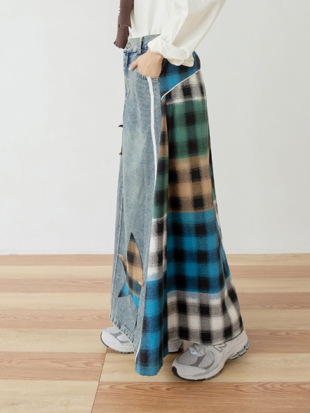 拼接丹寧格紋裙
