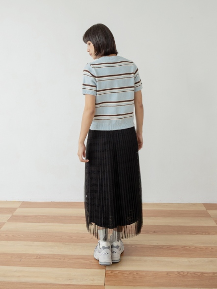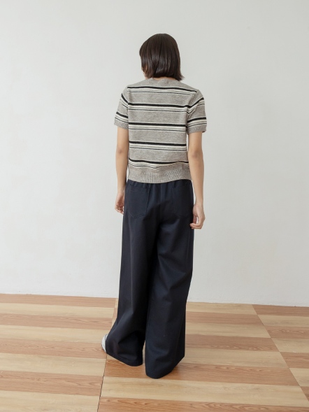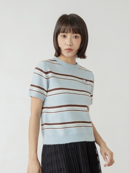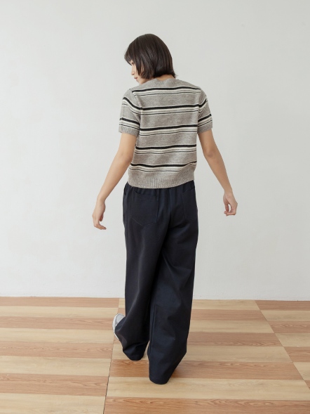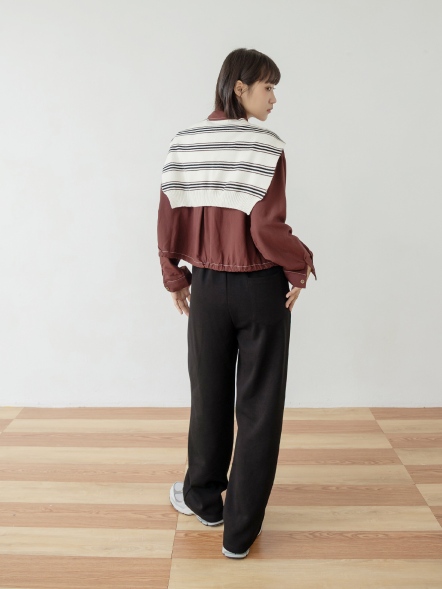 襯衫式披肩條紋上衣