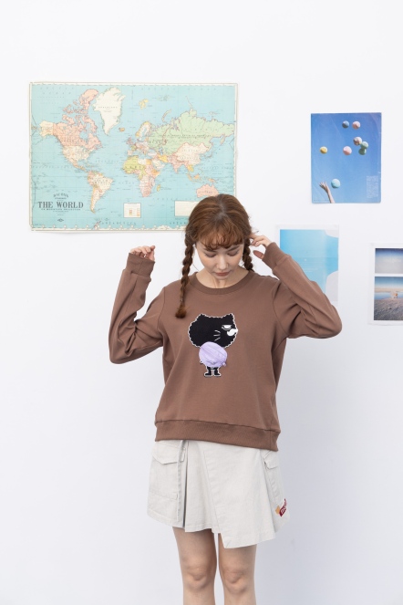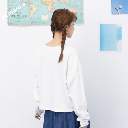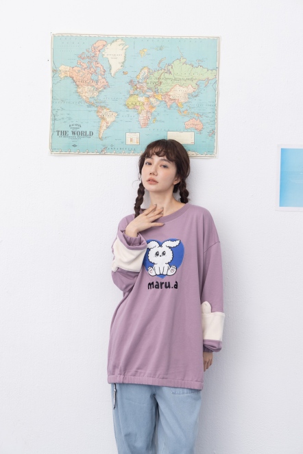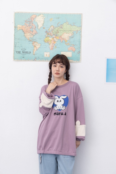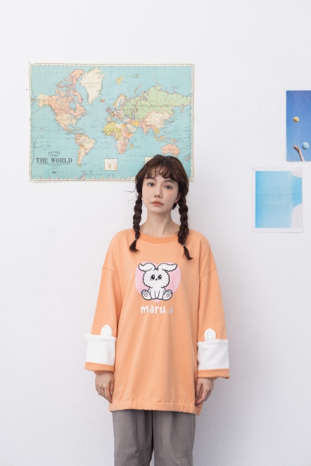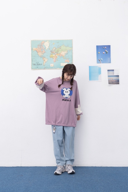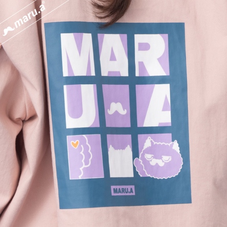 【maru.a】官網限定-滿版字母半邊拼接貓頭口袋造型落肩上衣⚡(1色)-黑色 24971215