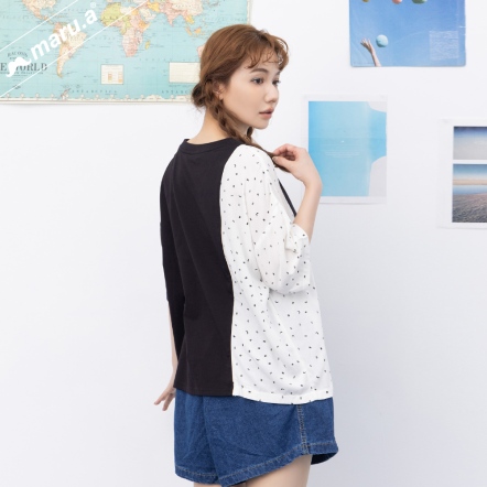 【maru.a】官網限定-HAVE MORE FUN🌞斑駁感撞色印花前後拼接造型上衣(2色)-黑色 24971214