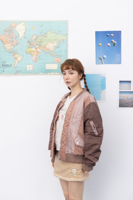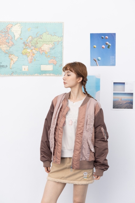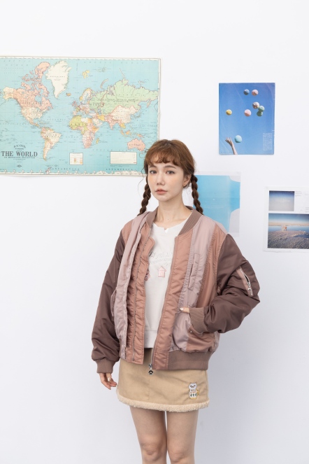 【maru.a】拼接撞色miru刺繡飛行外套(2色)-咖啡 24922213
