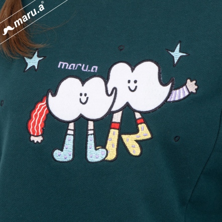 【maru.a】官網限定-鬍子小矮人🍄可愛撞色刺繡上衣(2色)-深綠 24971212