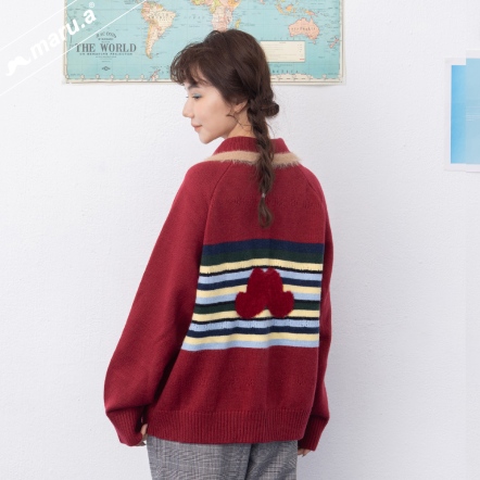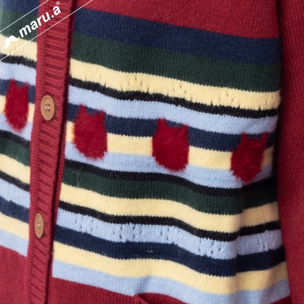 【maru.a】小翻領貓咪緹花簍空造型羊毛北極絨老奶奶毛衣🧶(3色)-紅色 24914112