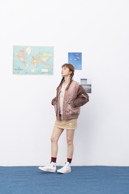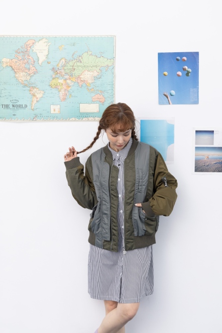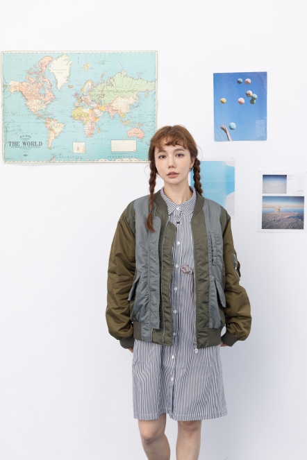 【maru.a】拼接撞色miru刺繡飛行外套(2色)-深綠 24922213