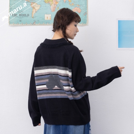 【maru.a】小翻領貓咪緹花簍空造型羊毛北極絨老奶奶毛衣🧶(3色)-黑色 24914112