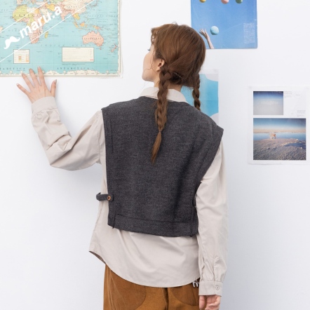 【maru.a】💫假兩件針織背心拼接襯衫miru刺繡造型上衣(3色)-淺灰 24943116