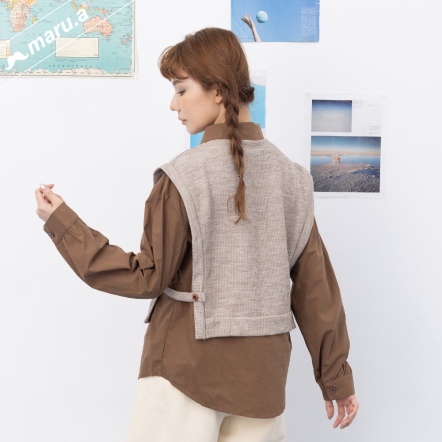 【maru.a】💫假兩件針織背心拼接襯衫miru刺繡造型上衣(3色)-駝色 24943116