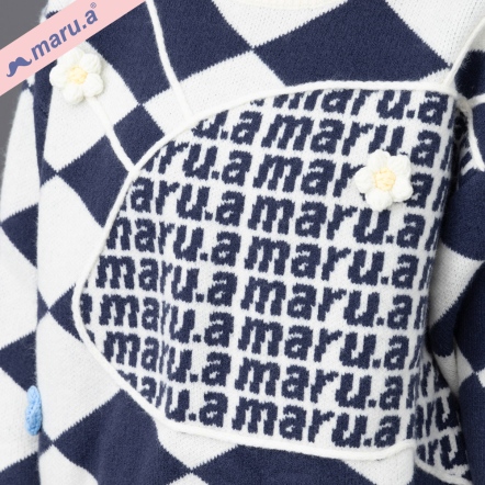 【maru.a】特殊設計款💫滿版字母撞色菱格紋厚磅小花毛衣(3色)-深藍 23914214