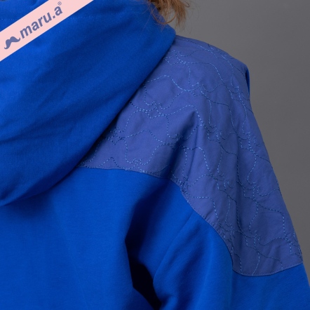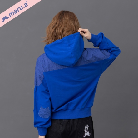【maru.a】英倫搖滾🎸特殊鬍子拼接配布連帽上衣(3色)-深藍 23921227