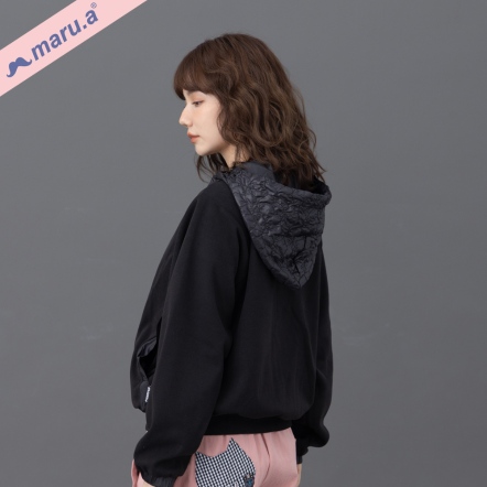 【maru.a】特殊絎縫抽繩連帽LOGO造型上衣⚡(2色)-黑色 23923122