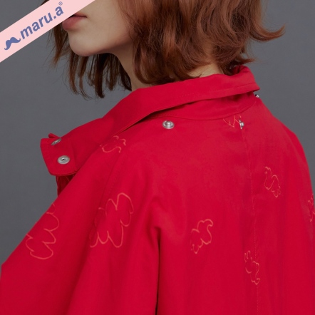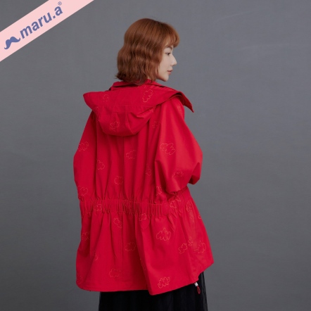 【maru.a】漫天小雲朵☁️鮮艷色系抽繩綁結連帽風衣(2色)-紅色 23912114