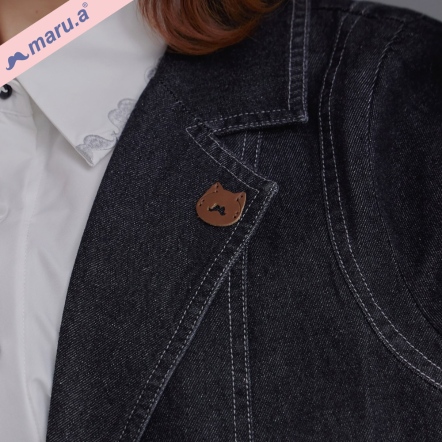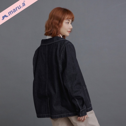 【maru.a】微正式感車線配色西裝式丹寧外套👜(2色)-黑色 23922512