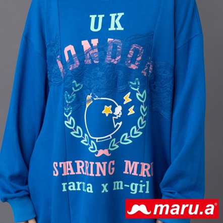 【maru.a】古典蕾絲拼貼撞色字母印花太空棉長版上衣🩰(2色)-深藍 23921313