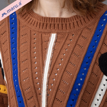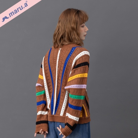 【maru.a】特殊設計款配色拼接鏤空針織上衣🌟(2色)-咖啡 23914212