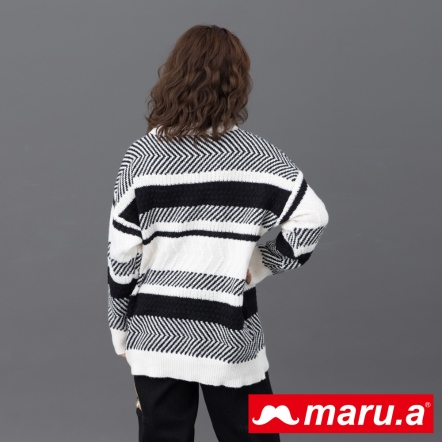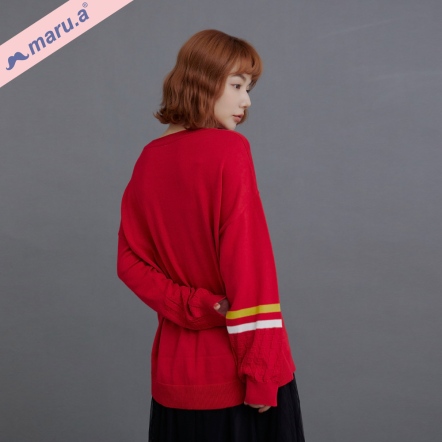 【maru.a】氣質學院風👒撞色大鬍子電繡特殊紋路針織線衫(2色)-紅色 23914211