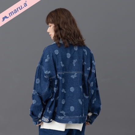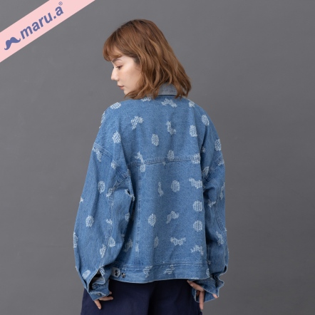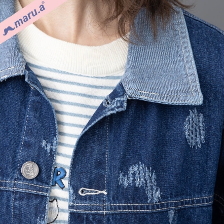 【maru.a】滿版水洗刷破緹花深淺拼接丹寧外套★(2色)-深藍 23912513