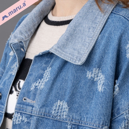 【maru.a】滿版水洗刷破緹花深淺拼接丹寧外套★(2色)-淺藍 23912513