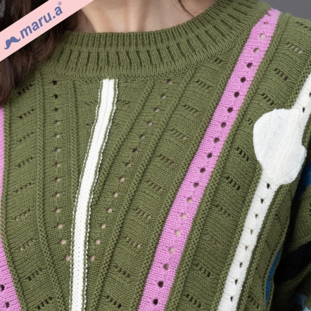 【maru.a】特殊設計款💫滿版字母撞色菱格紋厚磅小花毛衣(3色)-淺綠 23914214