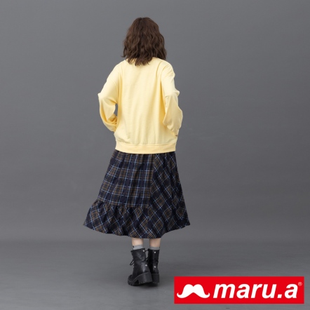 【maru.a】名偵探miru🕵手繪刺繡拼接學院風格紋魚尾長洋(2色)-深黃 23927113