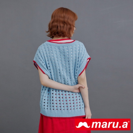 【maru.a】特殊設計款配色拼接鏤空針織上衣🌟(2色)-深綠 23914212