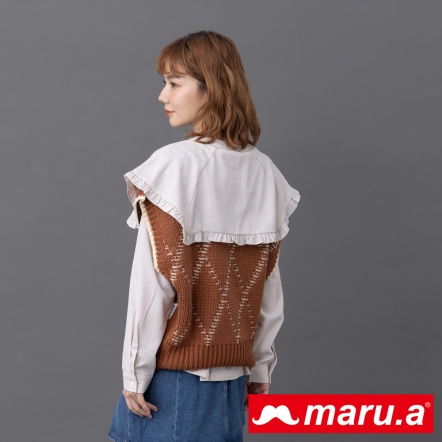 【maru.a】文藝日系文青👒V領菱格紋粗針織背心(2色)-咖啡 23924212