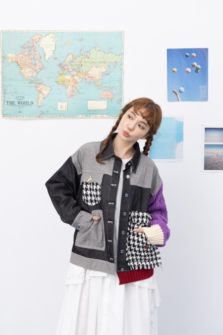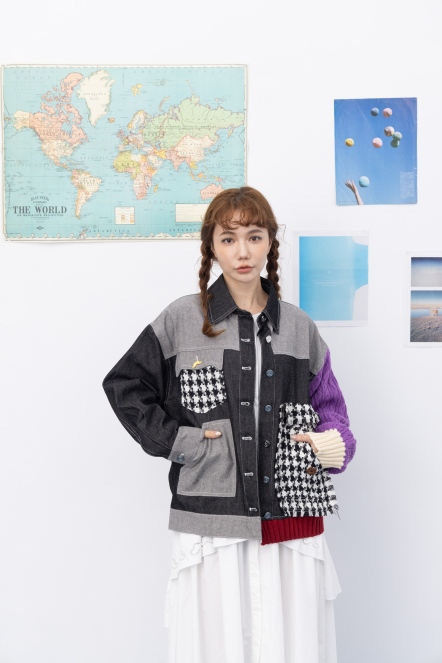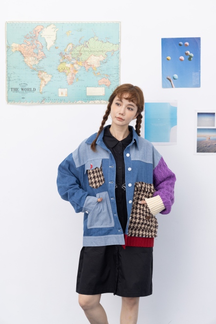 個性拼接織片牛仔外套💫(2色)丈青- 24932511