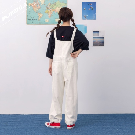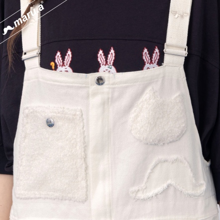 【maru.a】Camping girl🏕️泰迪毛造型口袋撞色織帶吊帶褲(2色)-白色 24915217