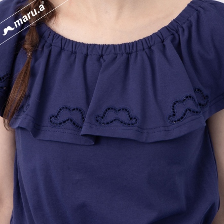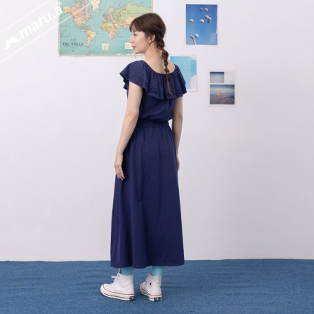 【maru.a】海洋度假風荷葉邊鏤空刺繡一字領洋裝💙(2色)-深藍 24917113