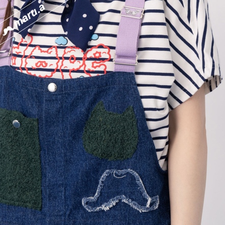 【maru.a】Camping girl🏕️泰迪毛造型口袋撞色織帶吊帶褲(2色)-深藍 24915217