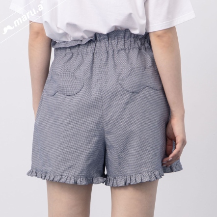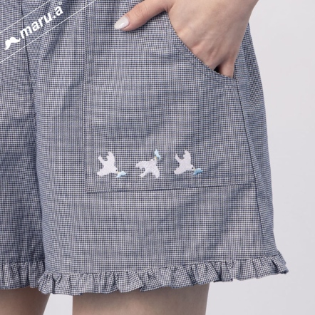 【maru.a】海鷗傳情💌手繪可愛刺繡甜美荷葉邊格紋短褲(2色)-深藍 24915111