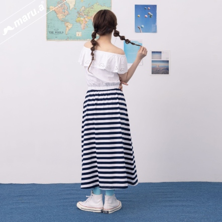 【maru.a】海洋度假風荷葉邊鏤空刺繡一字領洋裝💙(2色)-白色 24917113