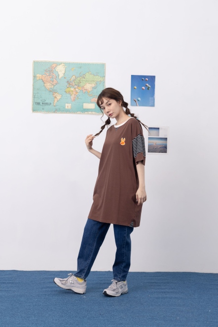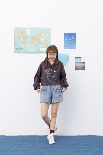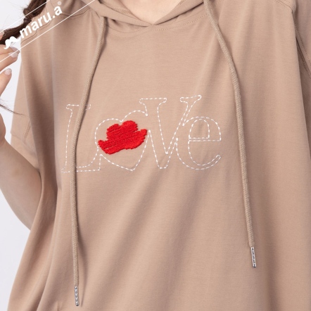 【maru.a】愛的告白💕字母虛線刺繡寬鬆連袖帽T(3色)-卡其 24911223