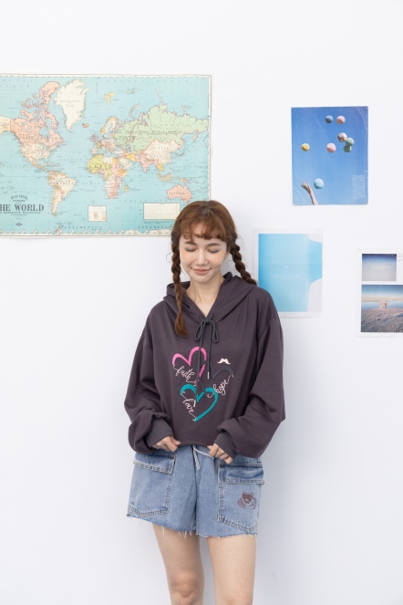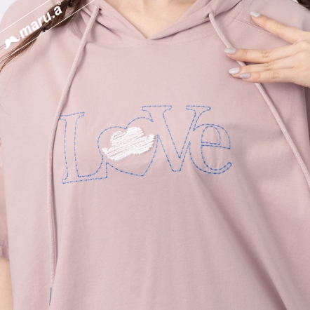 【maru.a】愛的告白💕字母虛線刺繡寬鬆連袖帽T(3色)-淺粉 24911223