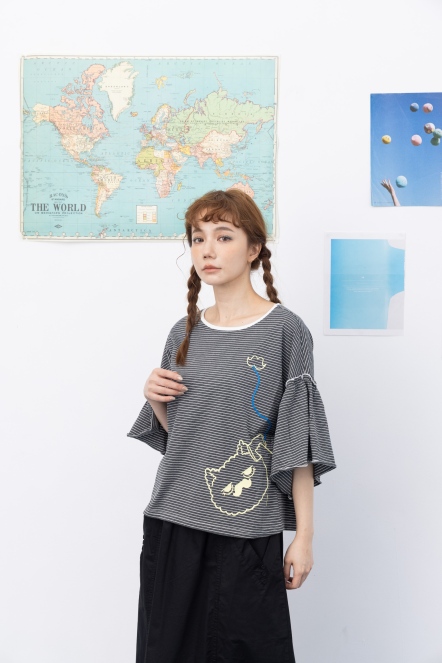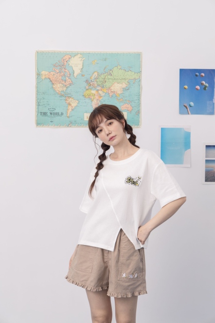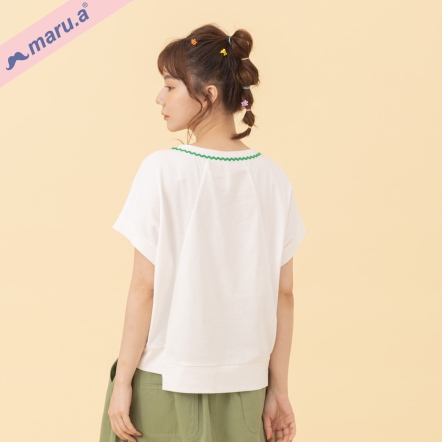 【maru.a】花花精靈mitu🧚手繪印花波浪滾邊不規則剪裁織帶造型T(2色)-白色 24321217