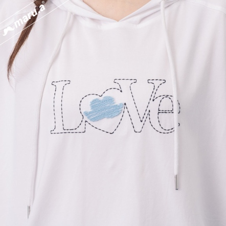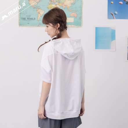 【maru.a】愛的告白💕字母虛線刺繡寬鬆連袖帽T(3色)-白色 24911223