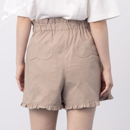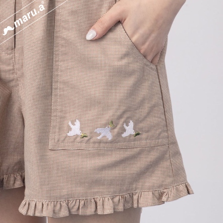 【maru.a】海鷗傳情💌手繪可愛刺繡甜美荷葉邊格紋短褲(2色)-駝色 24915111
