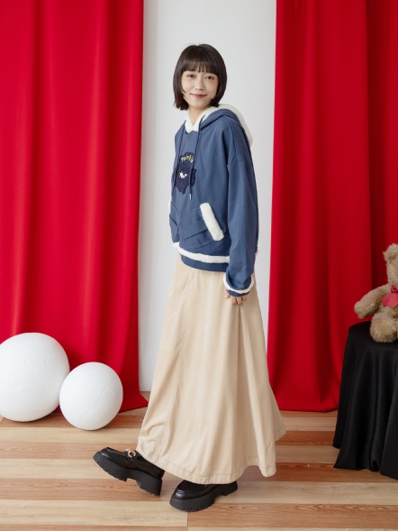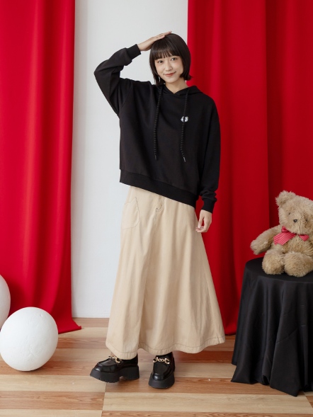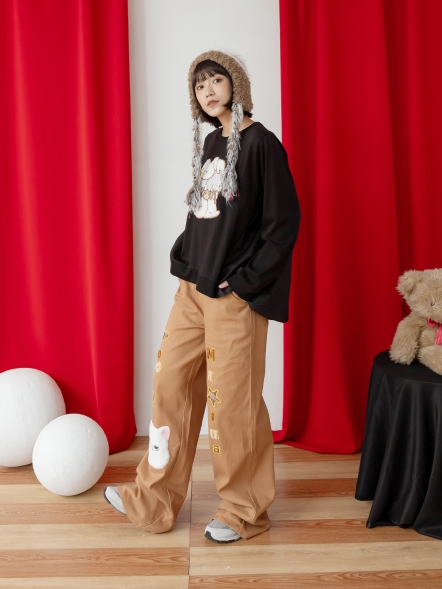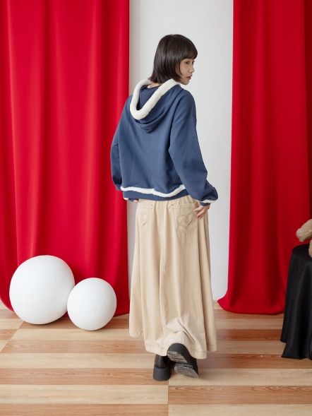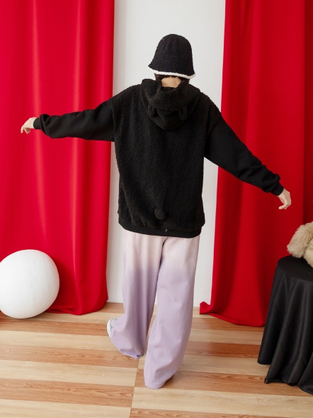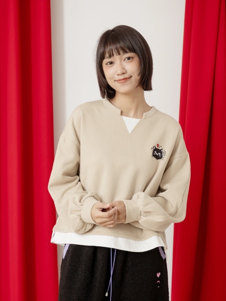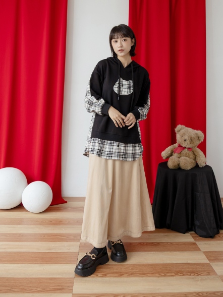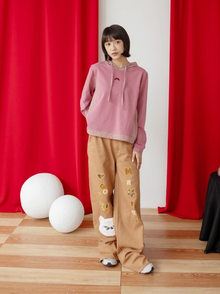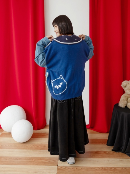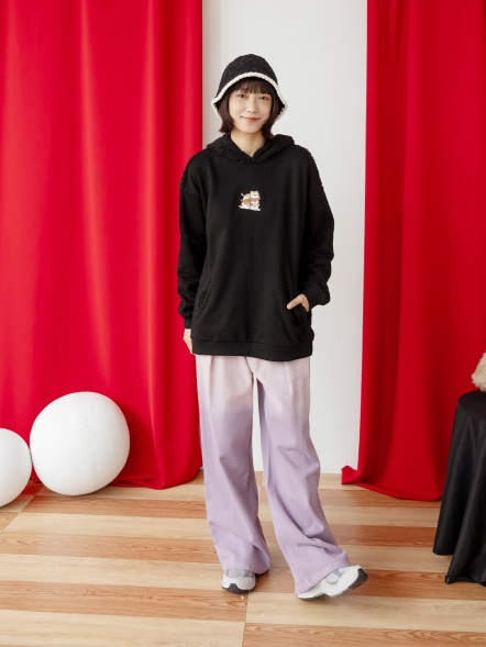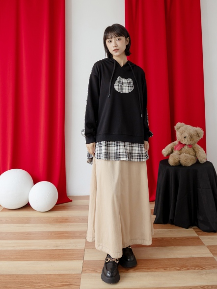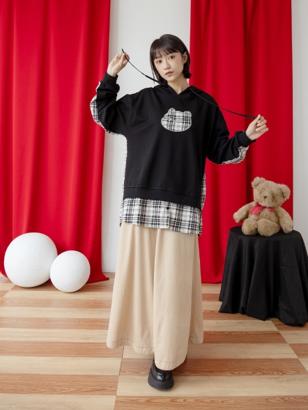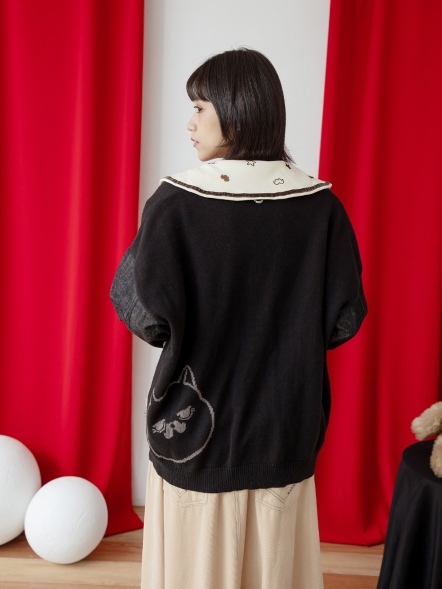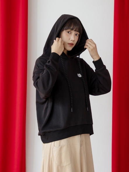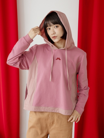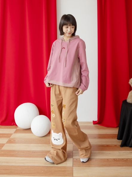 重工貓頭立體口袋拼接鬍子刺繡連帽上衣
