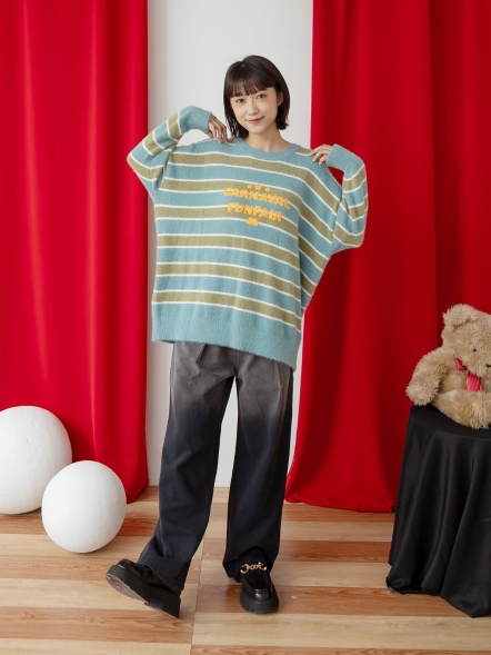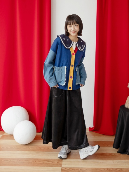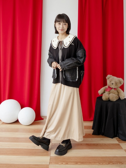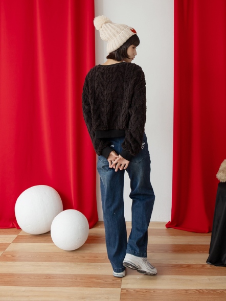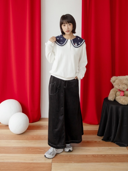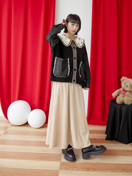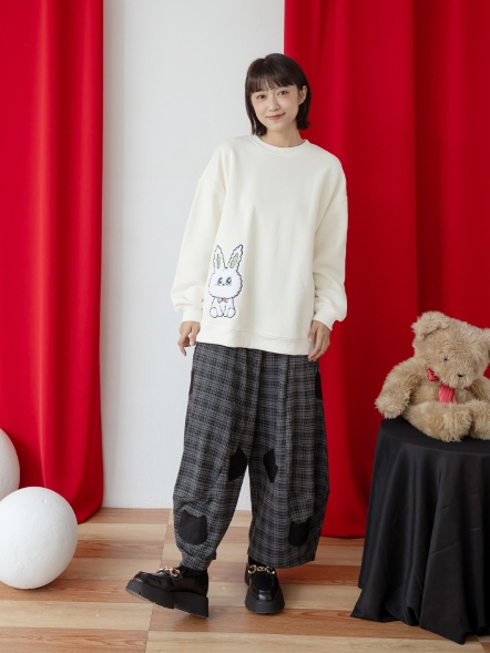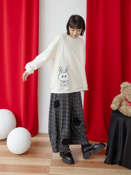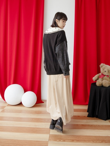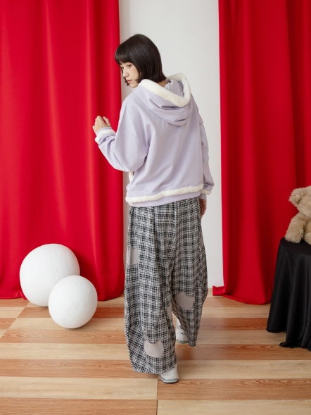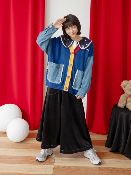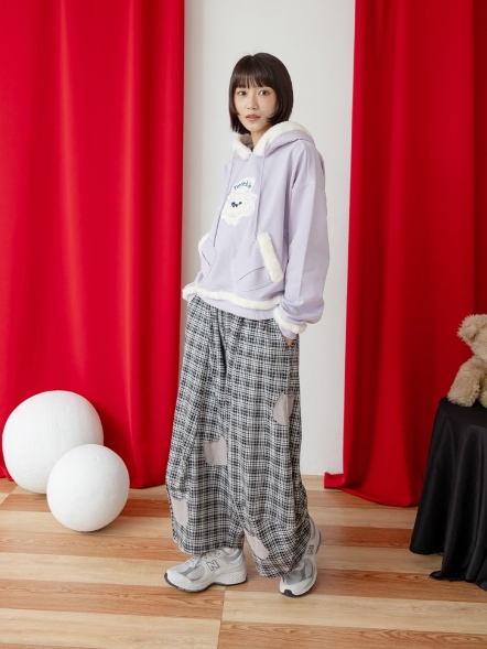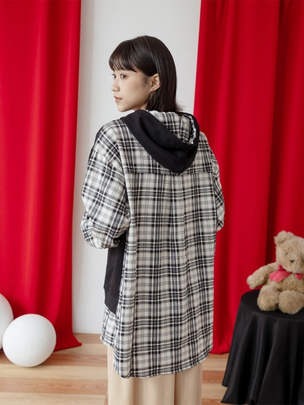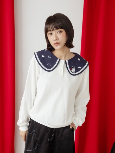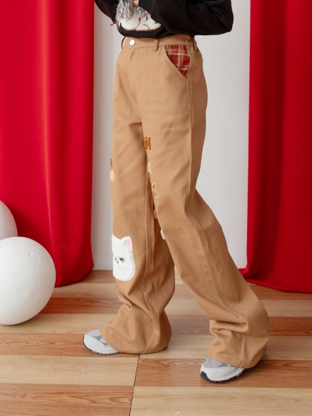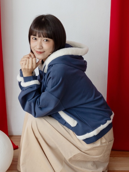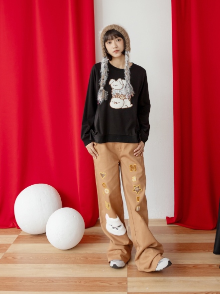 重工貓頭立體口袋拼接鬍子刺繡連帽上衣